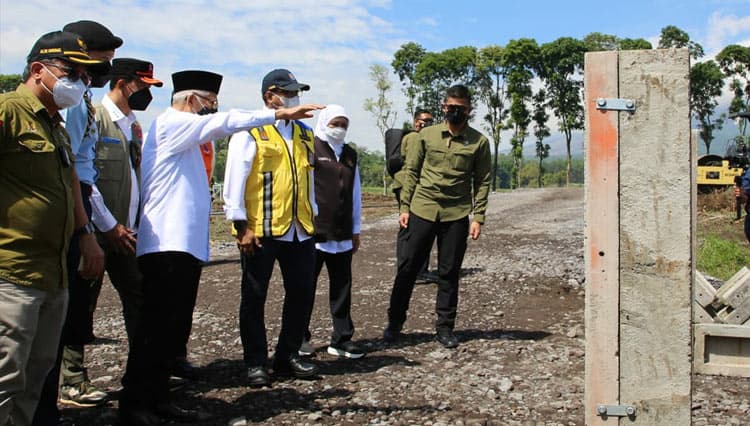TIMES Mataram/Sekjen PUPR RI Mohammad Zainal Fatah dampingi Wapres RI KH Ma'ruf Amin meninjau lokasi pembangunan Hunian Sementara (Huntara) bagi korban terdampak erupsi Gunung Semeru di Desa Sumbermujur, Kecamatan Candipuro, Kabupaten Lumajang.
